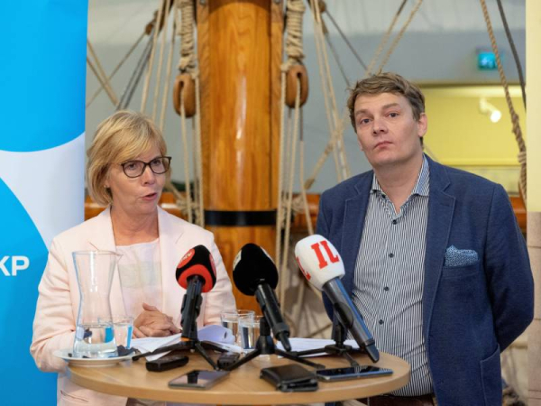 Anna-Maja Henriksson, the chairperson of the Swedish People’s Party, and Otto Andersson, the chairperson of the Swedish People’s Parliamentary Group, held a press conference in conjunction with the summer meeting of the parliamentary group in Mariehamn, Åland, on Tuesday, 29 August 2023. Andersson on Wednesday told YLE that the newly finalised government statement on equality meets the expectations of the ruling party. (Niclas Nordlund – Str / Lehtikuva)